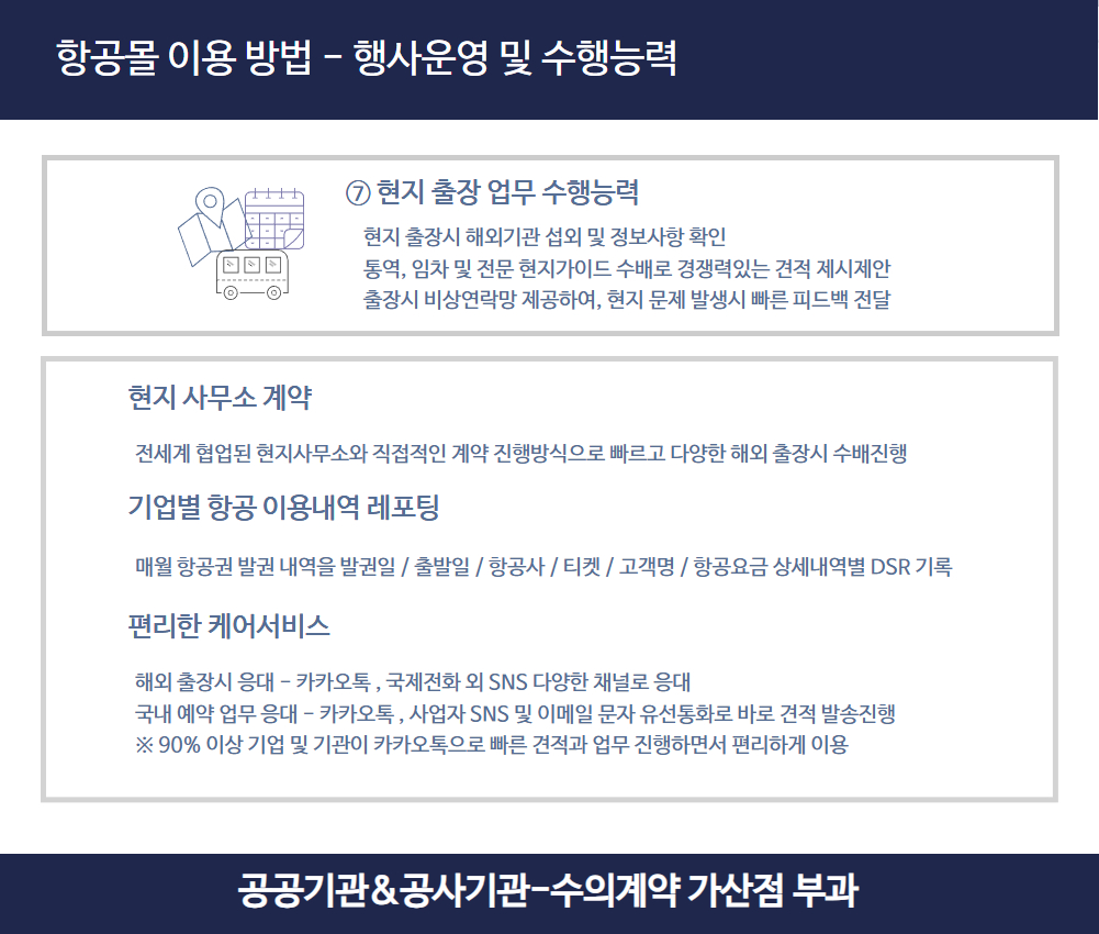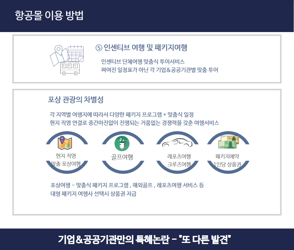 ● 항공권: 국적기 우선 발권, 마일리지 최적 적립