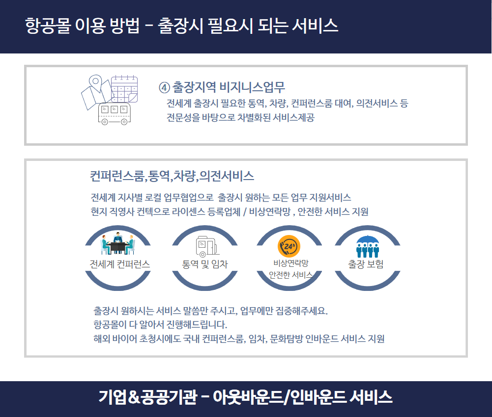 ● 출장지원: 회의실·통역·차량·의전 풀패키지