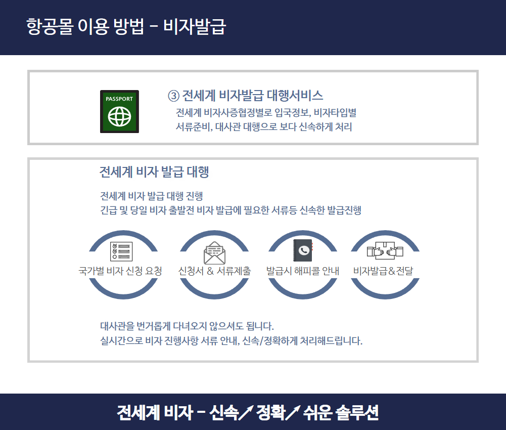 ● 비자: 실시간 서류 검수, 대사관 긴급 대행